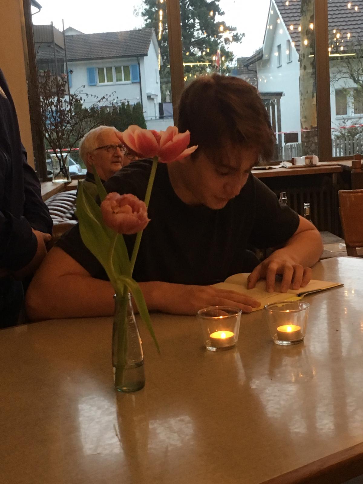 Am 10. April 2019 traten die Schülerinnen und Schüler der Klasse BC3 des Sekundarschulhauses Wüeri erneut an die Öffentlichkeit. Sie lasen aus ihrem Gedichtbuch "Frühling zweiter Klasse" im neueröffneten Cafe "Gleis1" am Bahnhof Nänikon-Greifensee.